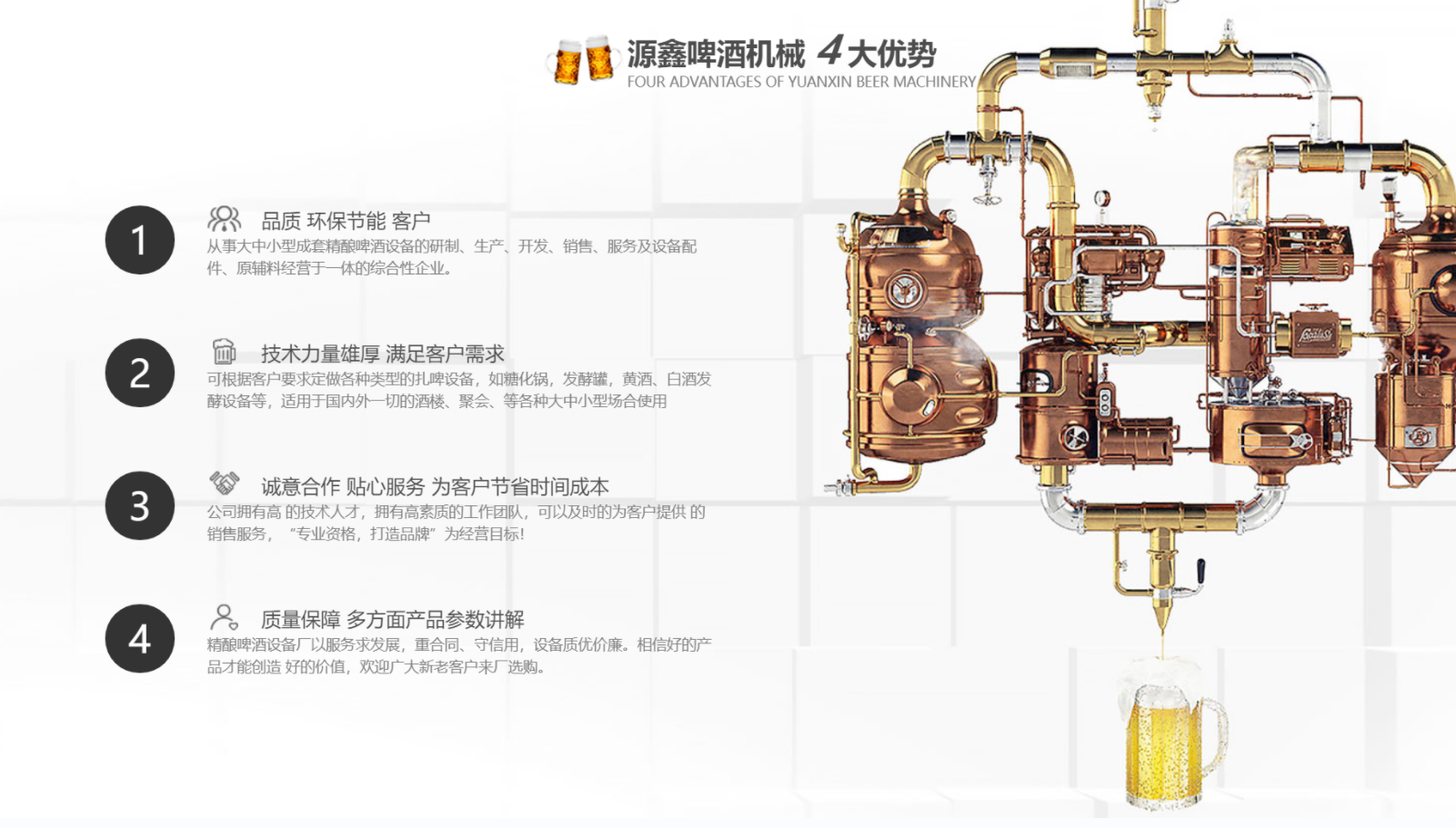 啤酒是我們生活中常常飲用的,自釀啤酒設備的出現(xiàn)大大豐富了啤酒業(yè)更深層次的內(nèi)涵,同...
